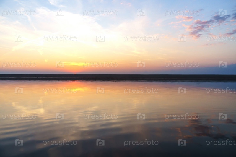 Отражение заката в воде. Красивый закат над морем. Цветное небо на закате