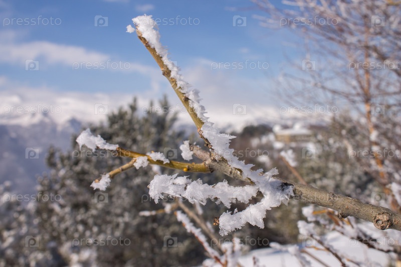 Ветка во льду крупным планом