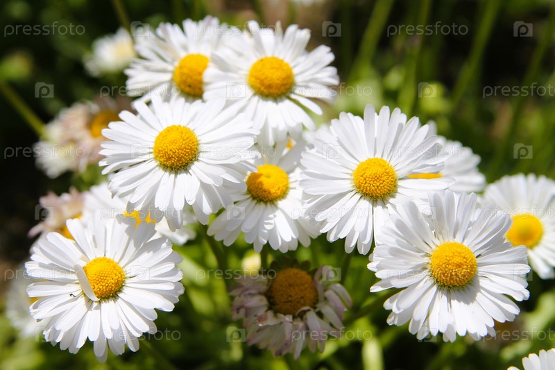 Аптечная ромашка на поляне. Цветок ромашки естественный фон