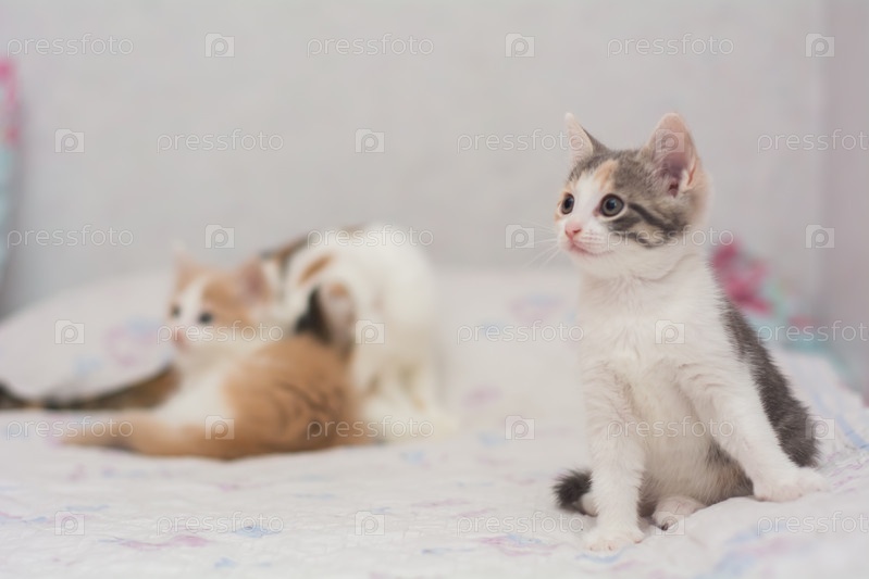 Трехмесячные котята играют друг с другом