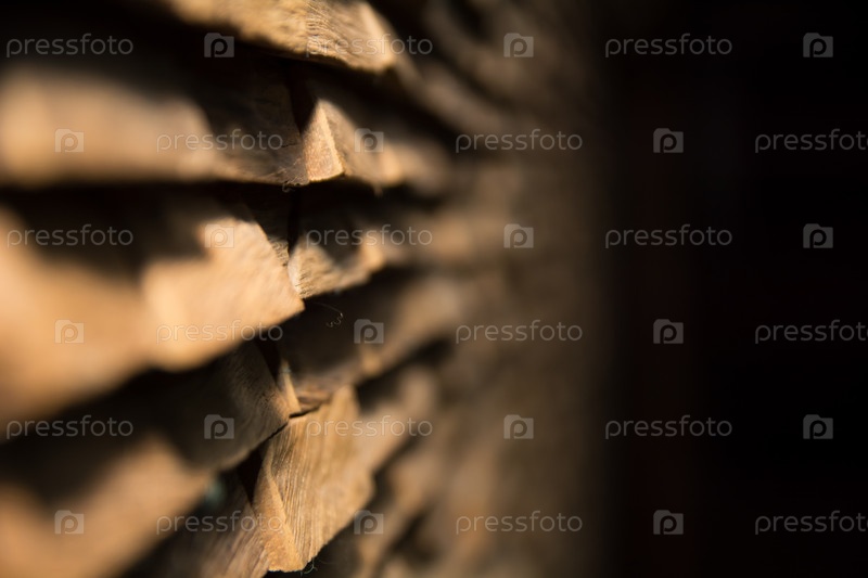 Отделка из дикого дерева. Препятствие, перспектива, глубина резкости. Селективный фокус