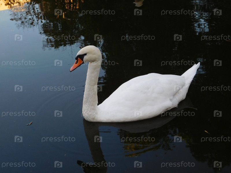 лебедь в пруду