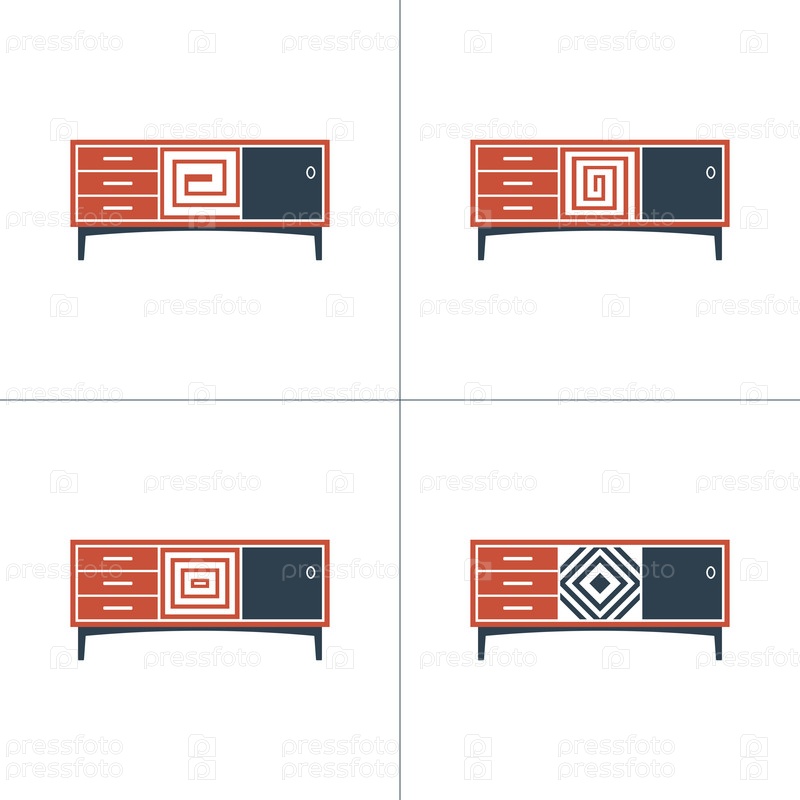 Набор двухцветных мебельных иконок на белом фоне. Тумбочки. Плоский стиль