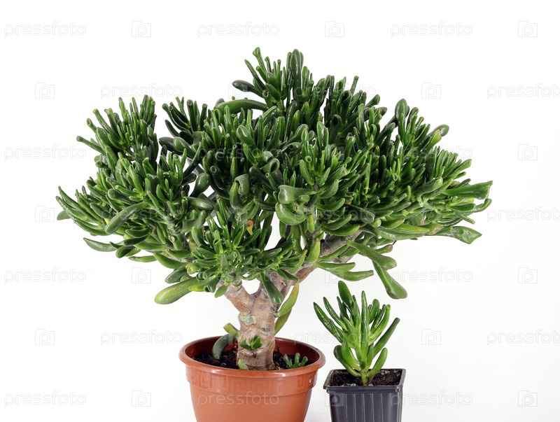 Взрослое и молодое растение Денежного дерева (лат.Crassula ovata hobbit)