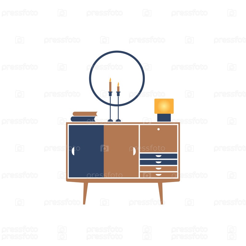 Фрагмент интерьера с тумбочкой. Иконка в плоском стиле
