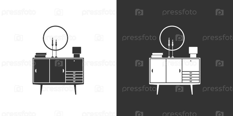 Плоская интерьерная иконка с тумбочкой. Черная и белая