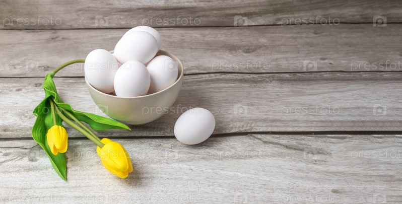 Куриные яйца в керамической миске