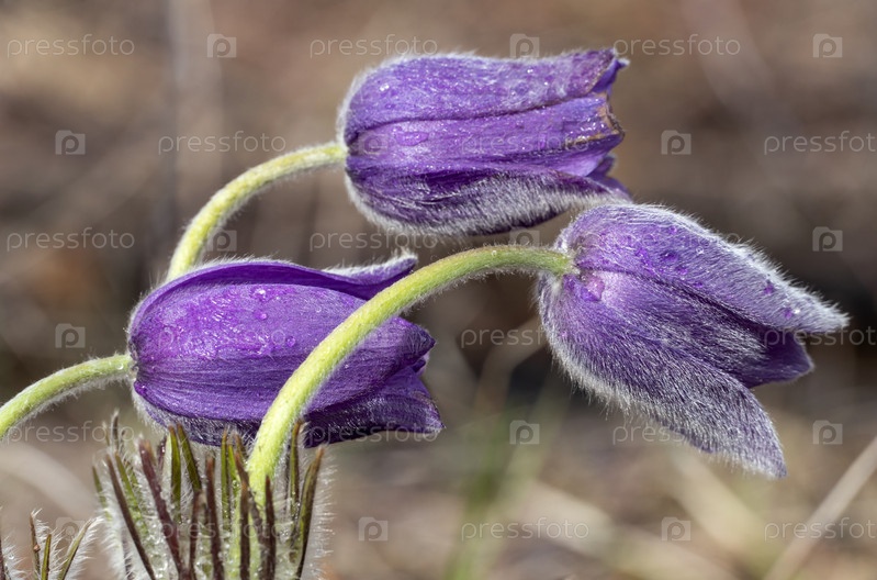 Весенние первоцветы сон-трава, прострел в бутоне