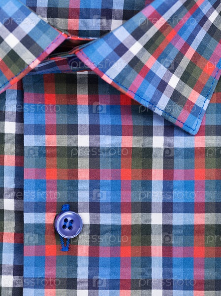 Крупный план планки с пуговицами на разноцветной клетчатой мужской рубашке