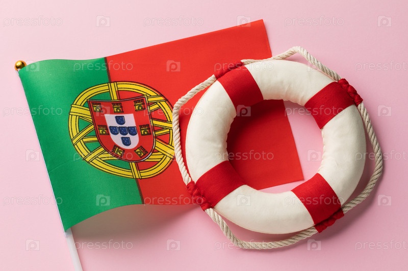 Флаг Португалии и спасательный круг на цветном фоне, концепция на тему помощи
