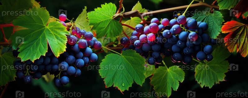 Крупный виноград висит и готов к сбору; виноградник для производства вина