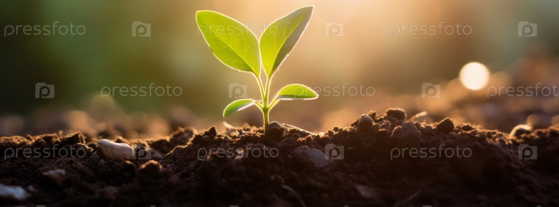 На прозрачной Земле вырастает новый росток. Образ защиты окружающей среды и устойчивого общества