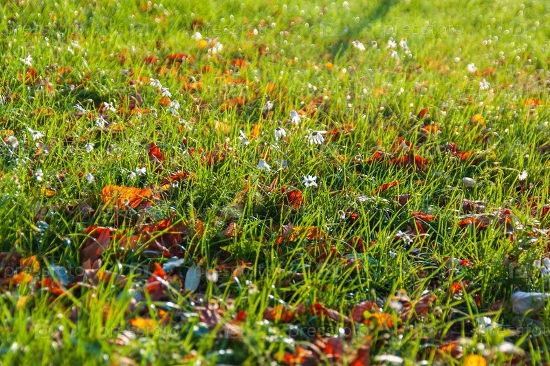 Опавшие листья на траве