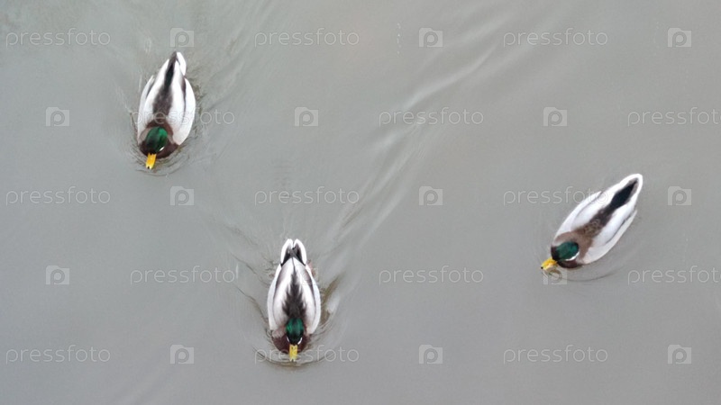 Дикие утки плавают в воде