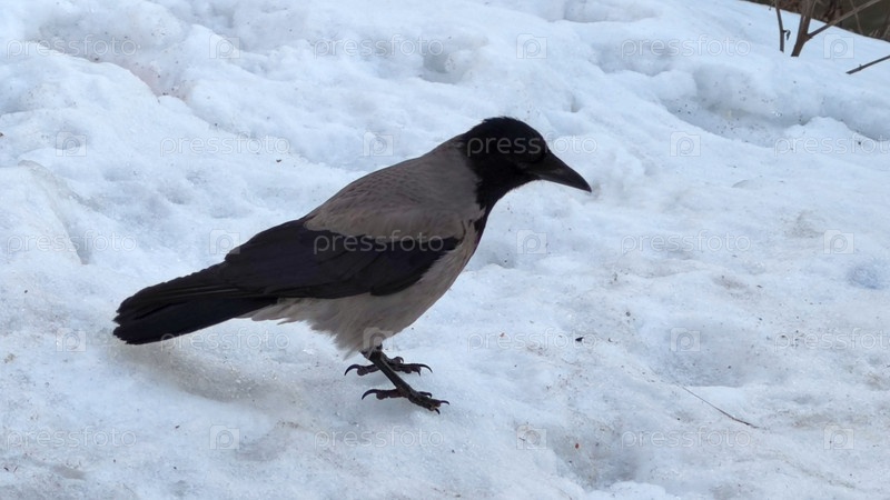 Серо-черная ворона на снегу