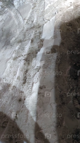 Рыхлый снег лежит на дороге