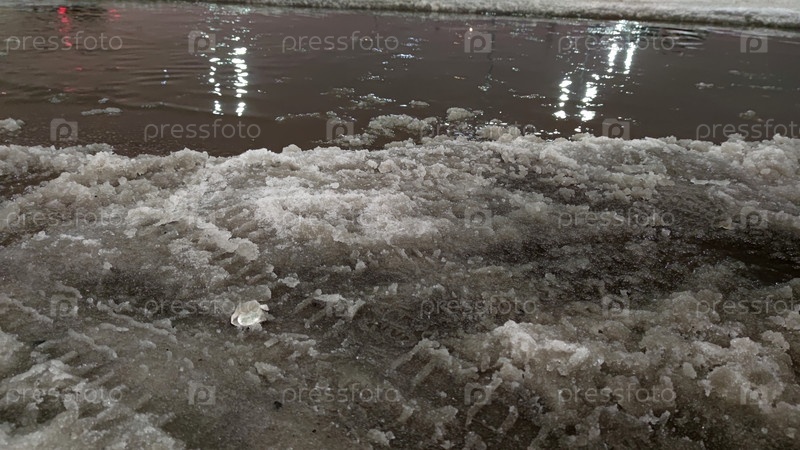 Большая лужа воды в снегу