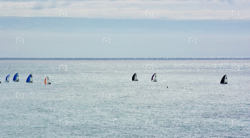 Группа парусников, плывущих по Черному морю в подсветке