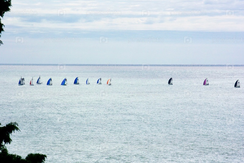 Группа парусников, плывущих по Черному морю в подсветке