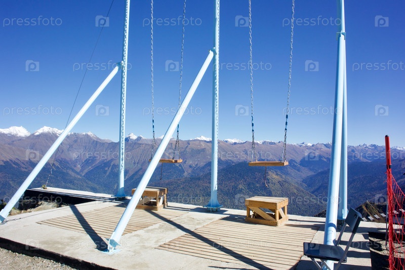 Аттракцион-качели над пропастью на вершине пика Роза. Сочи Россия