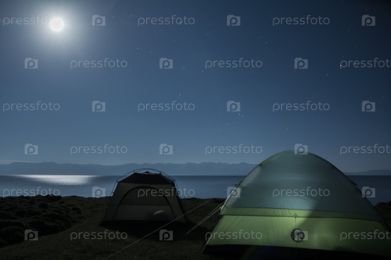 Озеро Сон-Куль при свете луны, ночное озеро. Мягкий фокус