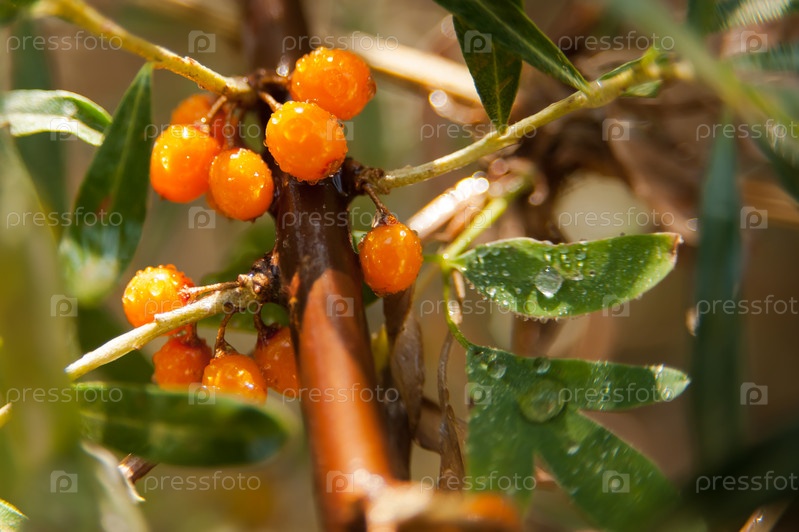 Ягоды дикой облепихи крупным планом
