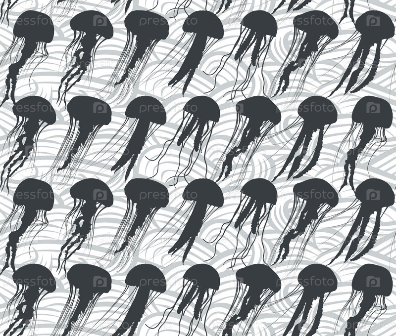 Бесшовный фон с медузами в море