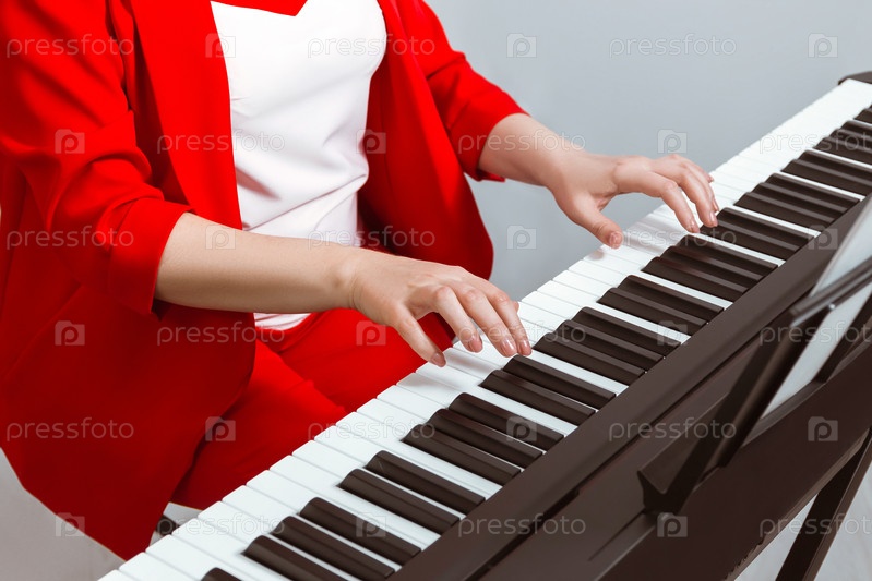 Руки девушки-пианистки, играющей на фортепиано крупным планом