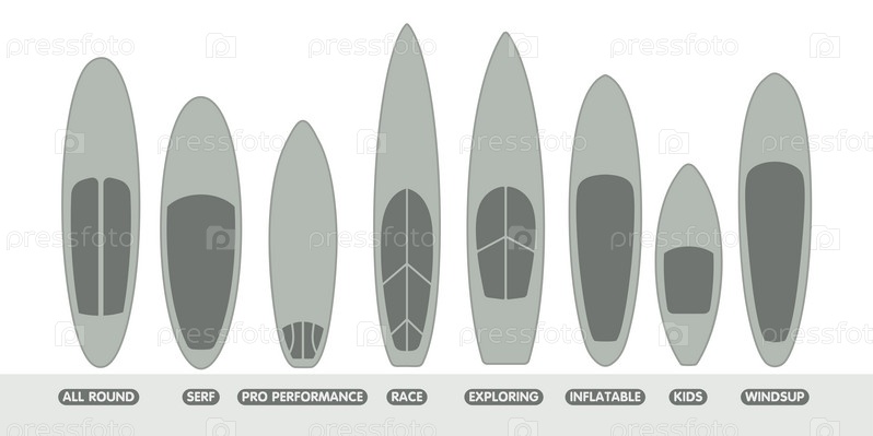 Большой набор силуэтов досок для серфинга. Доски для серфинга