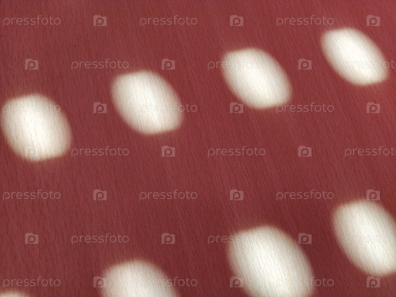 Красный фон с горошком. Лучи солнца проникают сквозь дыры в жалюзи и рисуют на цветной поверхности легкие размытые круги