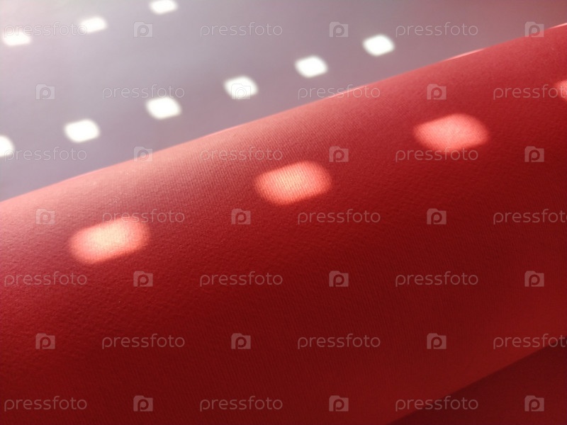 Красный фон с горошком. Лучи солнца проникают сквозь дыры в жалюзи и рисуют на цветной поверхности легкие размытые круги