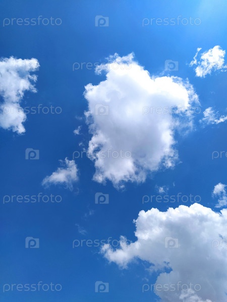 Голубое небо и белые облака в солнечном свете. Красивые манящие облака. Летние каникулы, путешествия и отдых