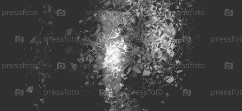 Рельефный стеклянный фон. Гофрированное стекло монохромное. Преломление света на ухабистой прозрачной поверхности под подсветкой. Игра белых и серых бликов. Черные области. Абстрактный фон