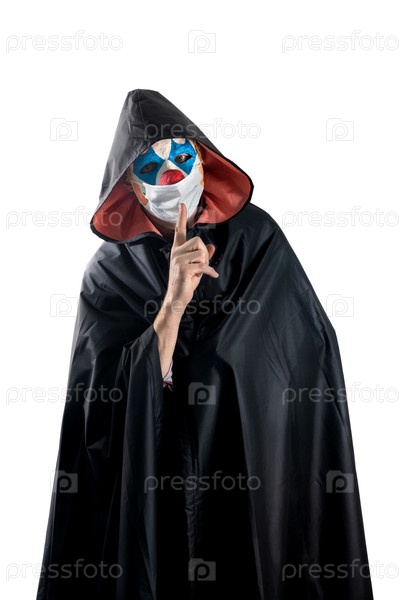 Клоун на изолированном белом фоне в медицинской маске
