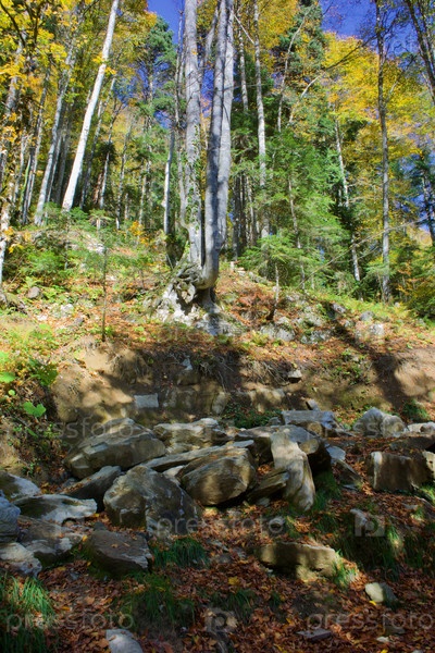 Вид на осенний лес в парке Менделич-Фолс. Сочи Россия
