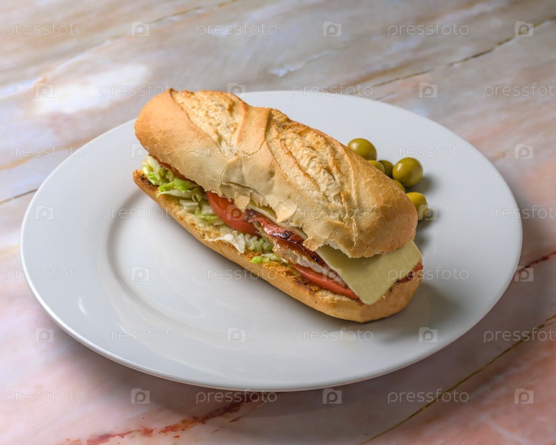 Один вид сэндвича на белой тарелке