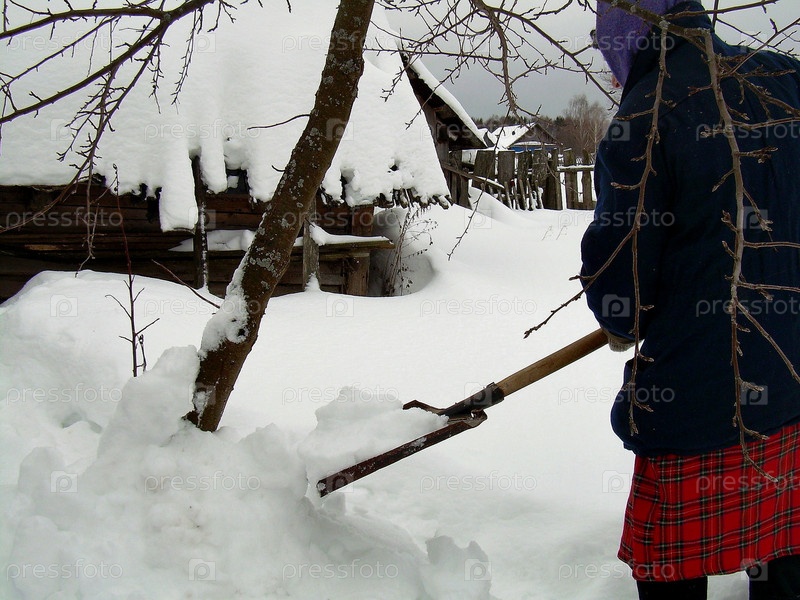 Сезонные работы на даче. Закидывание снегом стволов деревьев