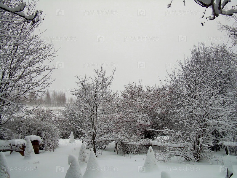 зима снег сад укрытие дача зимний цветник кустарники деревья растения