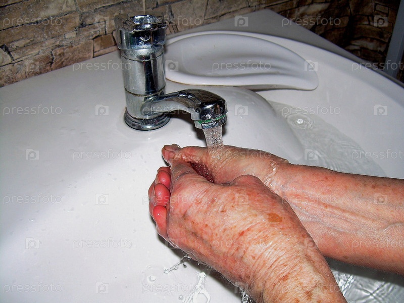 Пожилая женщина моет руки
