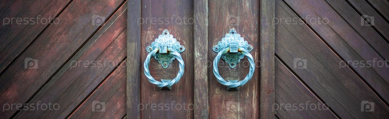 Большие старинные деревянные двери с мягкой обивкой