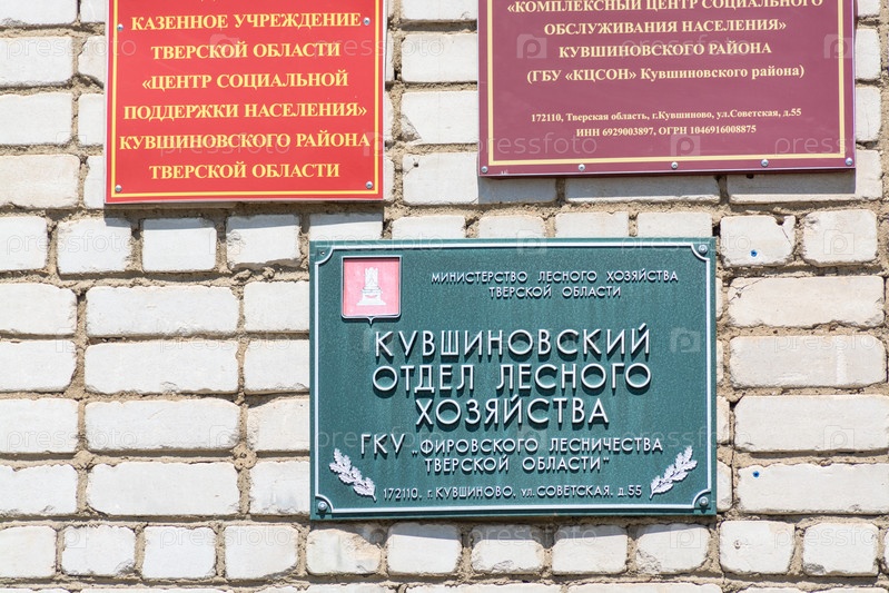 Россия,Тверская область, Кувшиновский район, город Кувшиново. Административное здание. Информационная табличка "Кувшиновский отдел лесного хозяйства"