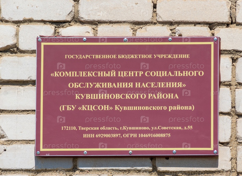 Россия,Тверская область, Кувшиновский район, город Кувшиново. Административное здание. Информационная табличка "Комплексный центр социального обслуживания населения Кувшиновского района"