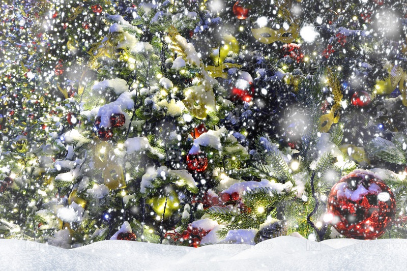 Фон рождественской елки, украшенной рождественскими украшениями