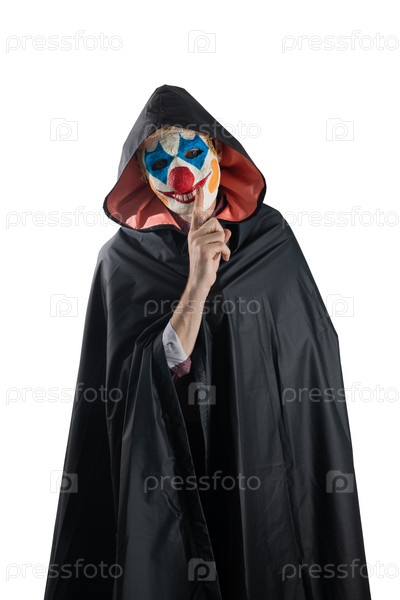 Клоун на изолированном белом фоне. Концепция тишины