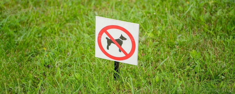 Яркий знак: собакам запрещено находиться на зеленой лужайке