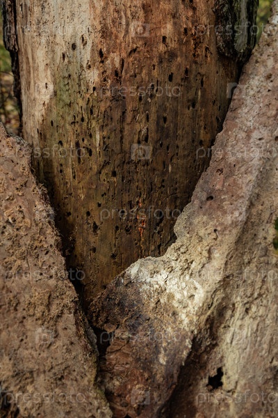 Ствол дерева гнилой и изъеденный короедами