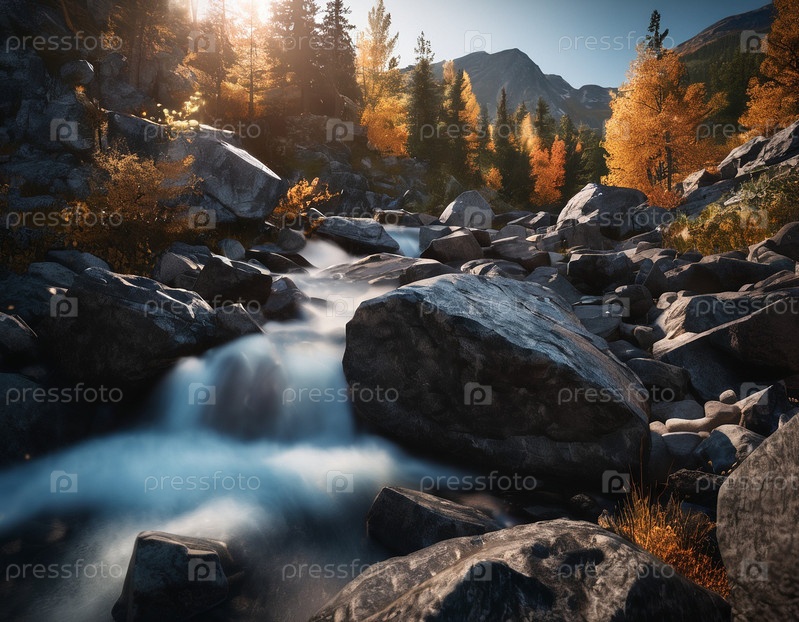 Красивый кинематографический горный пейзаж с черным мрамором и гранитом