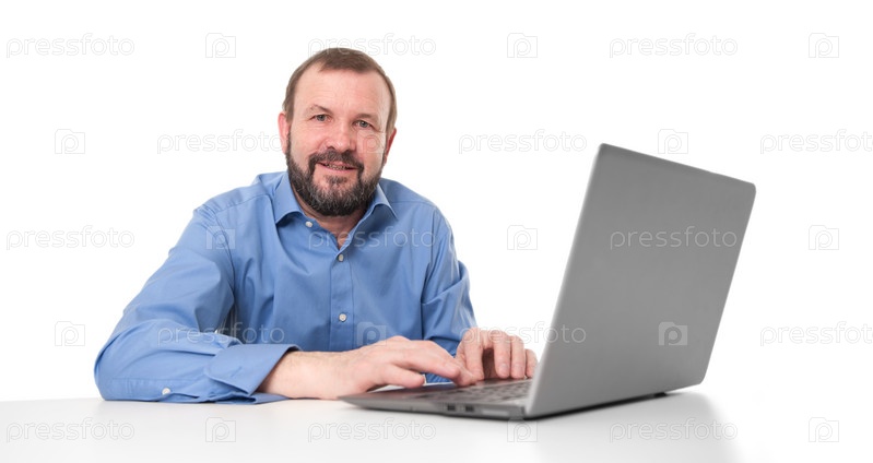 Пожилой бизнесмен с ноутбуком