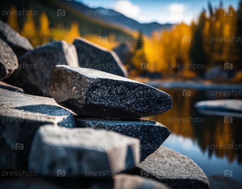 Красивый кинематографический горный пейзаж с черным мрамором и гранитом