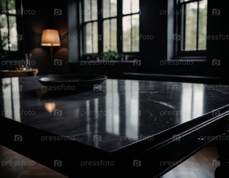 Профессиональный дизайн интерьера с использованием дорогого черного мрамора и гранита. Отличный фон для презентации и продукта
